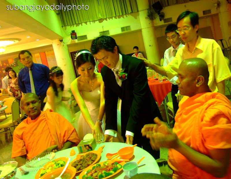This is another practice of Dana (generosity) by offering lunch to the Sangha (monk) members.The couple was doing the offering and the Reverends were doing the Sharing of Merits. May the blessing of the offerings made by the couple be shared with all beings.